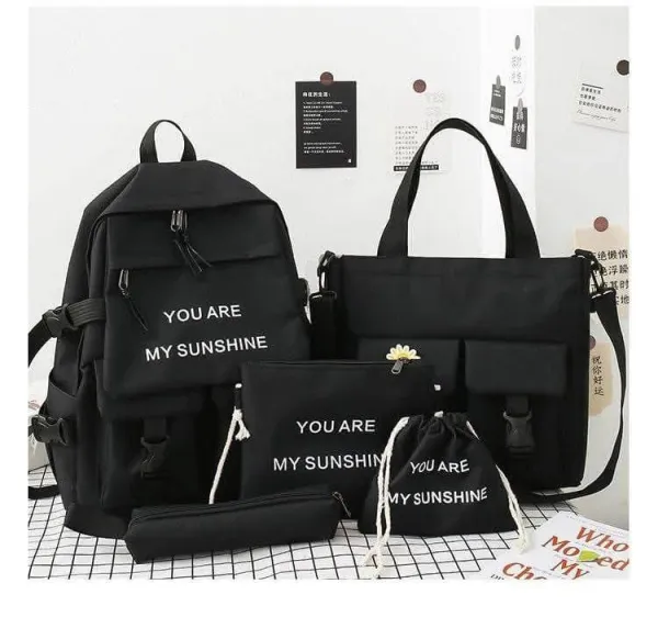 يمكنك استخدام القطع الخمس في مواقف مختلفة: المدرسة، الرحلات، السفر، أو حتى الخرجات اليومية. خامات مقاومة للاستخدام المتكرر تحافظ على شكلها الأنيق وجودتها لفترة طويلة. هذا الطقم صُمم ليكون رفيقك المثالي أينما كنت.
