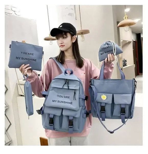 هذه المحفظة ليست مجرد حقيبة واحدة، بل طقم متكامل من 5 قطع مصممة بعناية لتلائم جميع احتياجاتك اليومية والدراسية. بفضل الألوان الجذابة والتفاصيل الدقيقة، تضيف لمسة من الأناقة والتميز لإطلالتك. المواد المستعملة متينة وخفيفة الوزن في نفس الوقت، ما يجعل الطقم مناسب للاستعمال الطويل دون عناء.